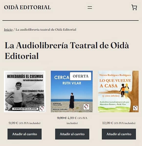Estas son las dos preguntas que más nos han hecho desde que lanzamos nuestro primer título: ¿Dónde compro vuestros audiolibros de teatro? ¿Cómo los escucho? Y estas solían ser nuestras respuestas: «Los audiolibros teatrales de Oidà Editorial están disponibles en las principales plataformas y librerías virtuales.» «Puedes disfrutar de la escucha desde la página web…